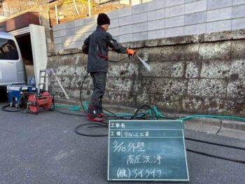 高圧洗浄の様子。